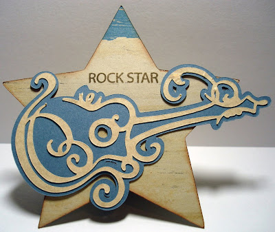 Challenge #9 - Take Shape - Shaped card using the star from Old West and the Guitar from Hannah Montana. Used stamp from My Pink Stamper "Everyday Occasions."